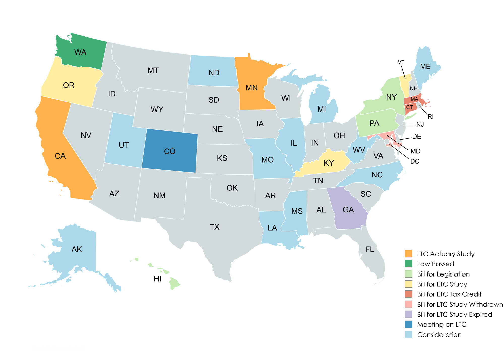 In 2019 the Washington state legislature established the Washington Cares Fund, the nation’s first publicly funded long-term care benefit for eligible workers, to address the future LTC crisis posed by an aging population. This sparked a national conversation about the need for long-term care planning as state Medicaid systems struggle to cover the 70% of Americans that will need LTC in their lifetimes, only 10% of whom have insurance that will pay for it. Many other states have followed suit and are in various stages of evaluating public LTC programs of their own. Depending on how each state designs their plans, qualifying LTC insurance policies may allow individuals to opt out of the payroll tax.